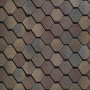 Два слоя черепицы демонстрируют произвольную геометрию лепестков и придают кровле визуальный объем. Кровля приобретает естественный вид, будто она выполнена из штучного материала ручной работы: дранки или сланца.